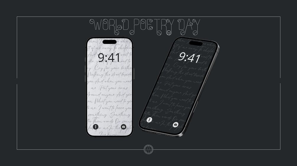 - Two high-quality wallpapers – a soft parchment-inspired design and a deep charcoal variation, both adorned with poetic script.