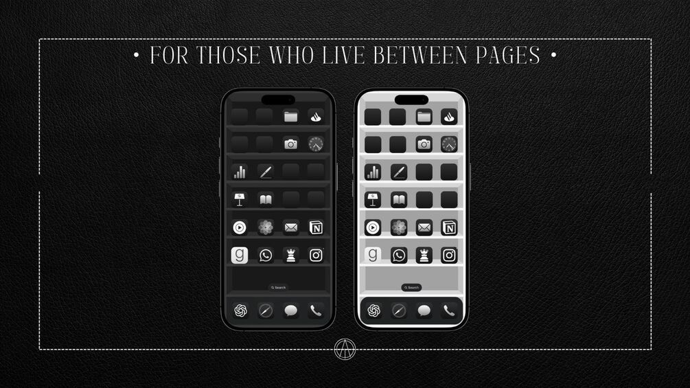 • 🗂 1 Black Bookshelf Home Screen – for organizing your apps like a curated archive